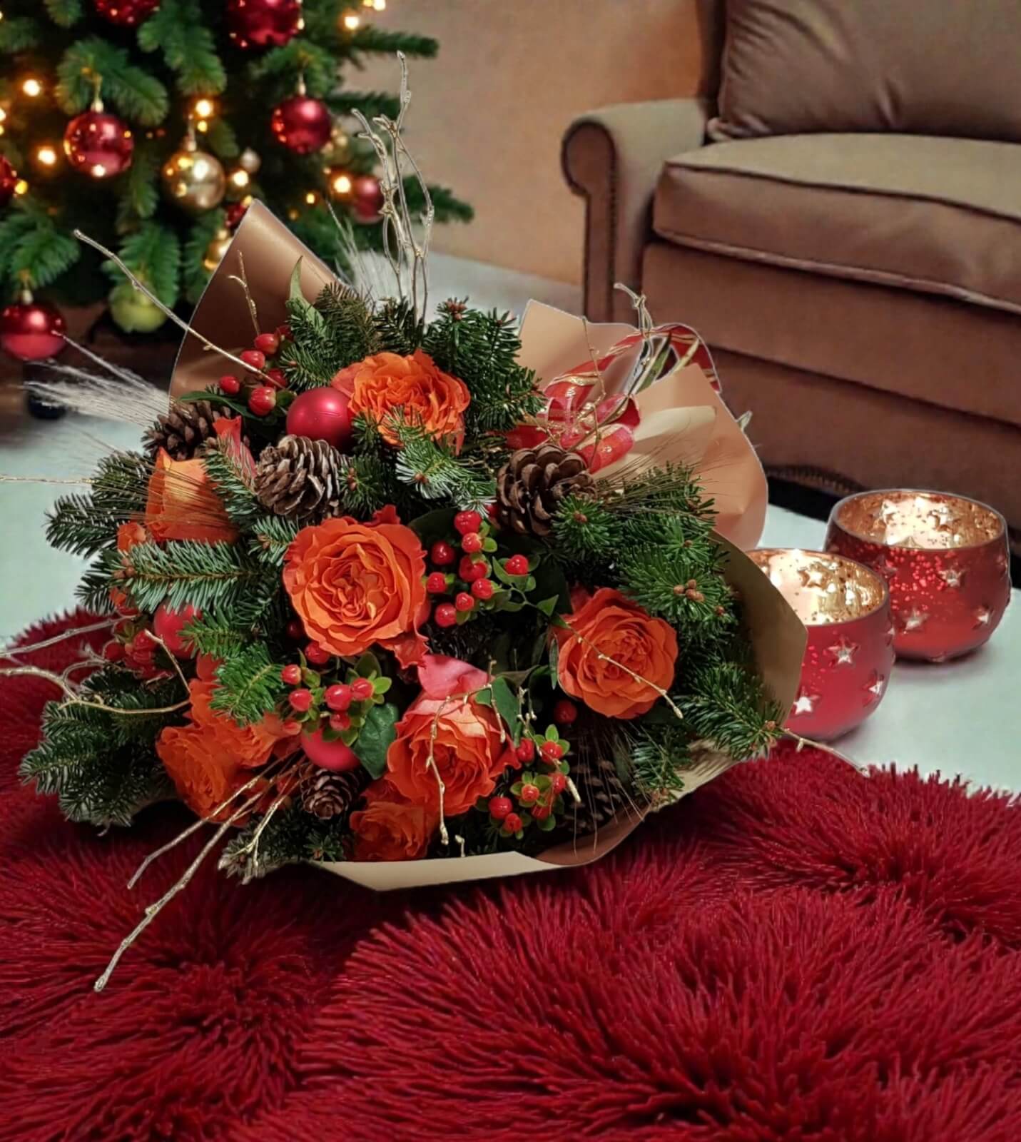 Mazzo fiori natalizio rosso e arancione - MEDIO